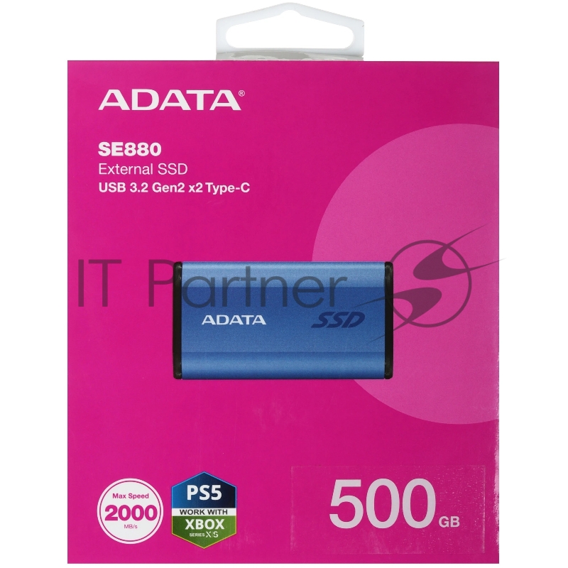 Твердотельный накопитель ADATA External SSD SE880, 500GB, USB 3.2 Gen2 Type-C, up to R/W 2000/2000 MB/s, 64.8x35x12.5mm, Blue (5 лет)