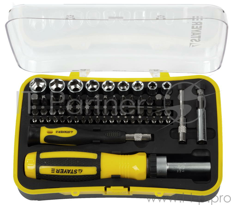 Ручной инструмент Набор STAYER MASTER: Отвертка реверсивная с эргономичной ручкой, с насадками, в пластмассовом боксе, 65 предметов 25310-H65