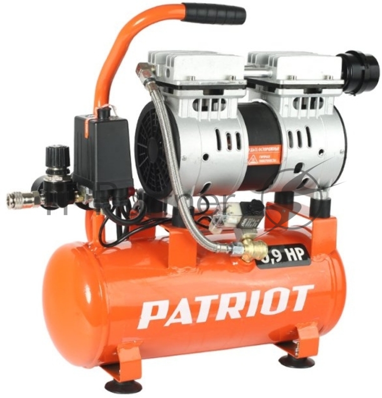 [Компрессоры, Пневматическое оборудование] PATRIOT WO 10-120 Компрессор [525306370] {Безмасляный; Мощн.: 0,65 кВт; Напр.230В.Об. дв.: 2850 об/мин; Производ.: 120 л/мин; Объем ресивера: 10 л; Давление: 8 бар}