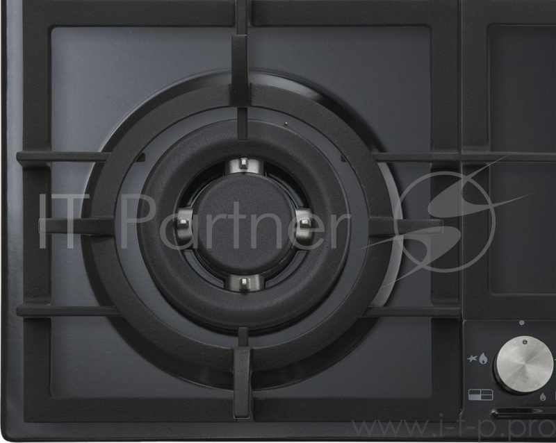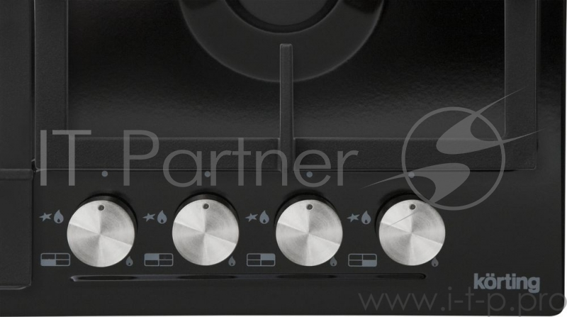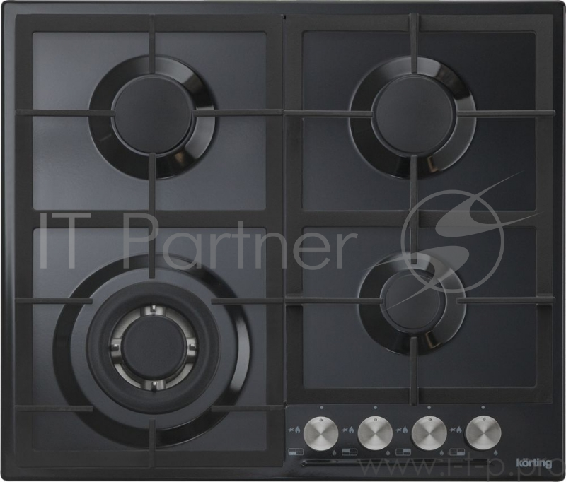 Встраиваемые газовые панели Korting Crystal, 60x51 см, газовая, независимая, электроподжиг, газ-контроль, чугунные решетки, в комплекте - подставка WOK и адаптер для кофейника, цвет-матовый черный