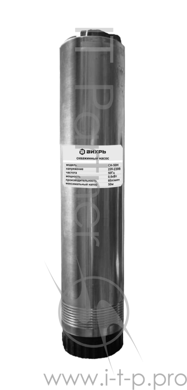 Насосы Вихрь СН-50Н 68/3/2 Скважинный насос { центробежный, 600 вт, мах-3600л/час, D-100мм, вых.-1дюйм }