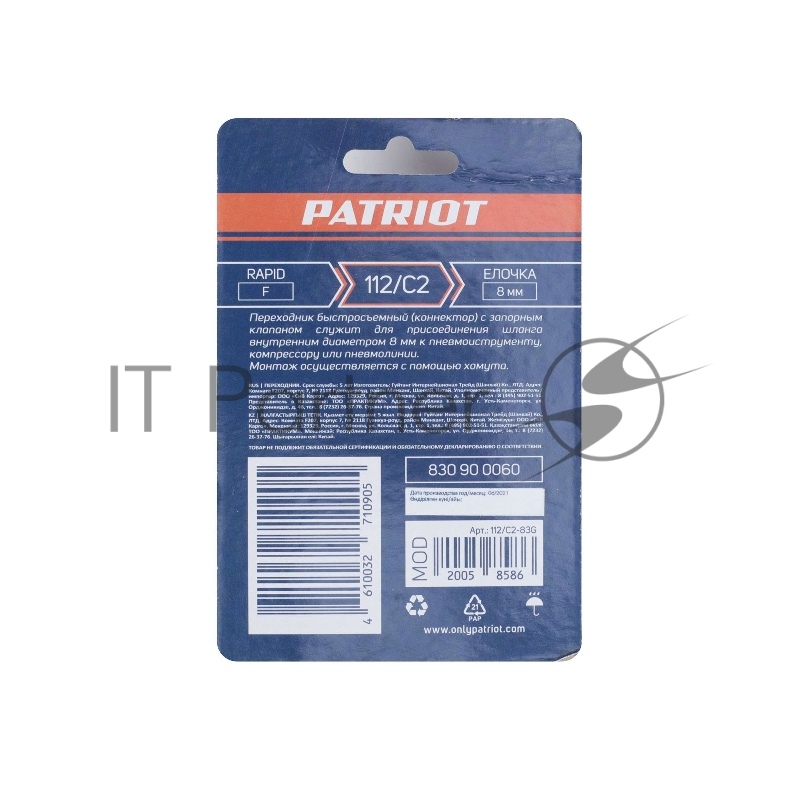 Переходник PATRIOT 112/С2 (Rapid елочка 8мм)