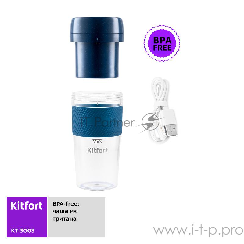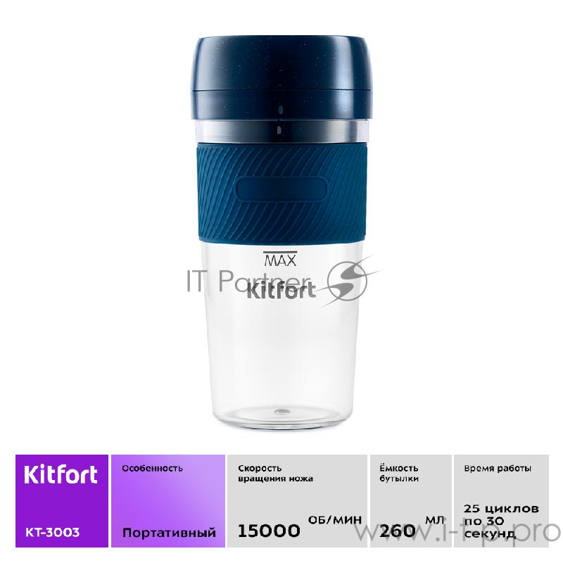 Портативный блендер Kitfort Мощность 50 Вт.Максимальная скорость вращения ножей 15000 об/мин