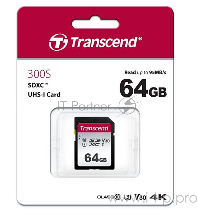 Карта памяти SecureDigital 64Gb Transcend TS64GSDC300S {SDXC Class 10, UHS-I U3}