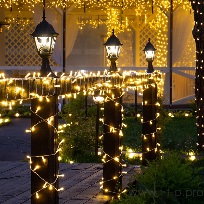 Гирлянда «Нить» 10 м, 200 LED, прозрачный ПВХ, цвет свечения теплый белый NEON-NIGHT