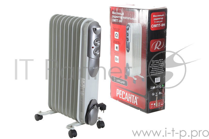 Тепловые пушки Ресанта ОМПТ- 9Н [67/3/4] Масляный радиатор { 2,0кВт, 450?140?650, 9 секций, 9,7 кг }