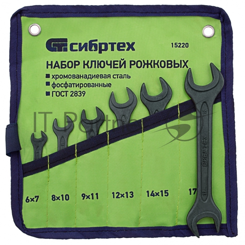 Набор ключей рожковых СИБРТЕХ ,6 - 19 мм,6 шт., CrV,фосфатированные,ГОСТ 2839//15220