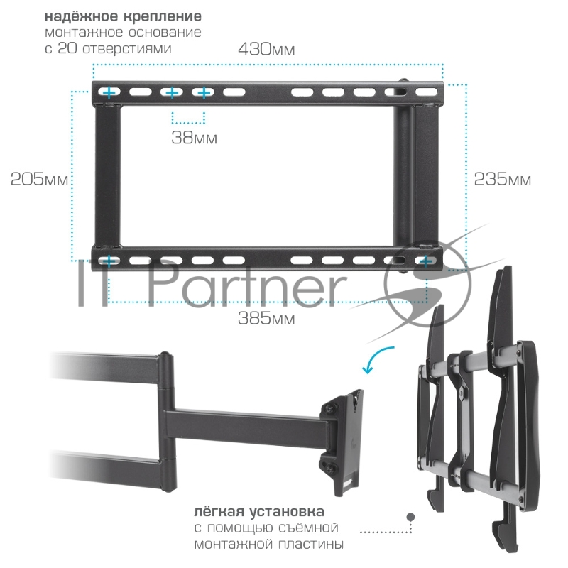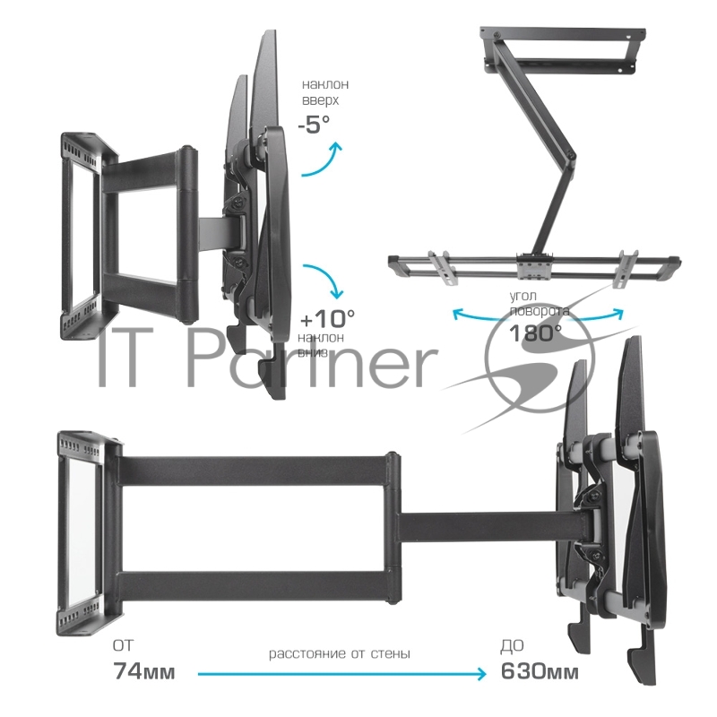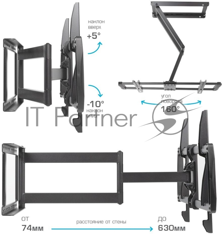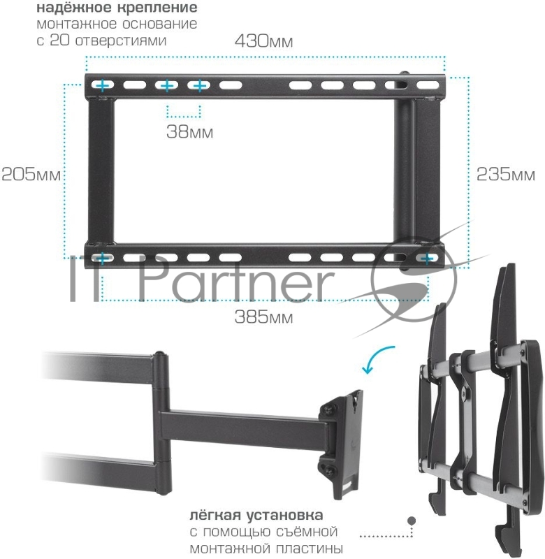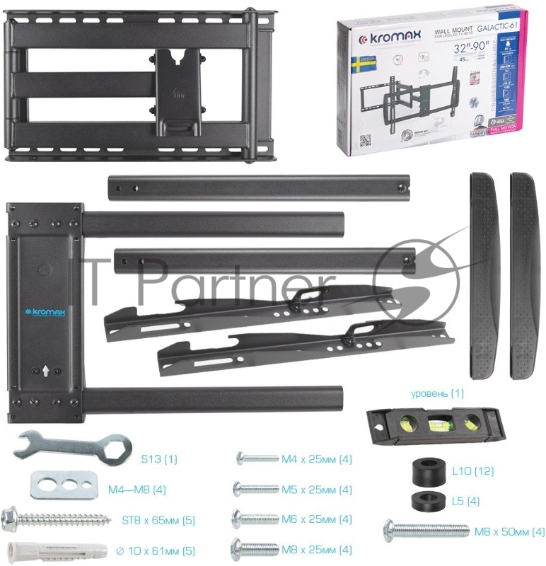 [Крепеж] Kromax GALACTIC-61 черный 32"-90" макс.45кг настенный поворот и наклон