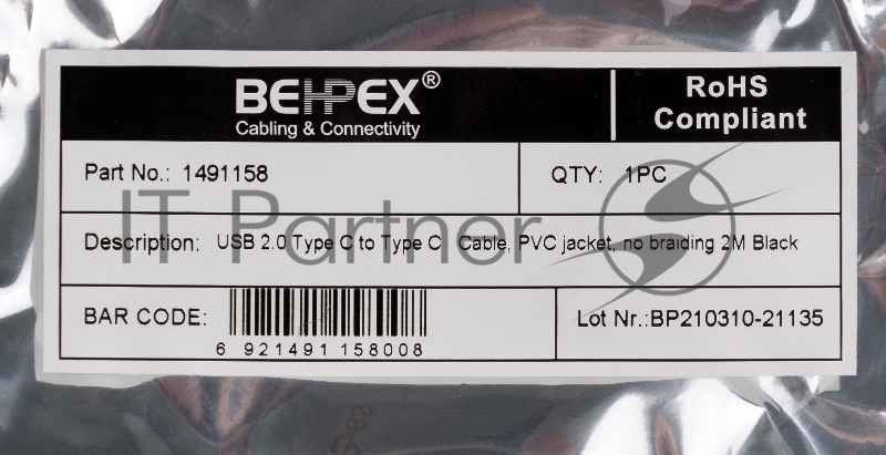 Кабель USB Type-C (m)-USB Type-C (m) 2м черный