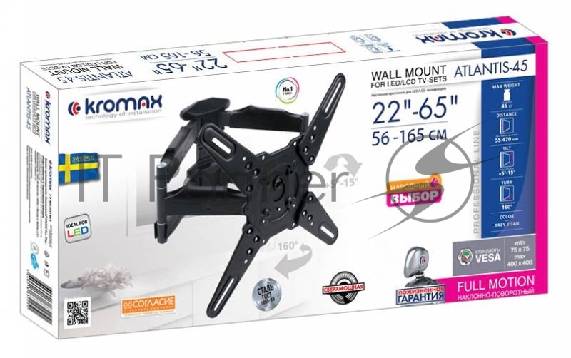 Кронштейн для телевизора Kromax ATLANTIS-45 серый 22-65 макс.45кг настенный поворот и наклон