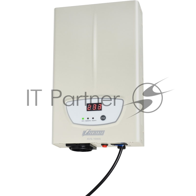Стабилизатор POWERMAN AVS 1000S, ступенчатый регулятор, цифровые индикаторы уровней напряжения, 1000ВА, 140-260В, максимальный входной ток 7А, 1 евророзетка, IP-20, навесного исполнения, 290мм х 175мм х 68мм, 3,09 кг. Stabilizer POWERMAN AVS 1000S, s