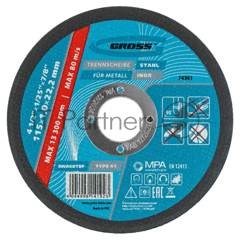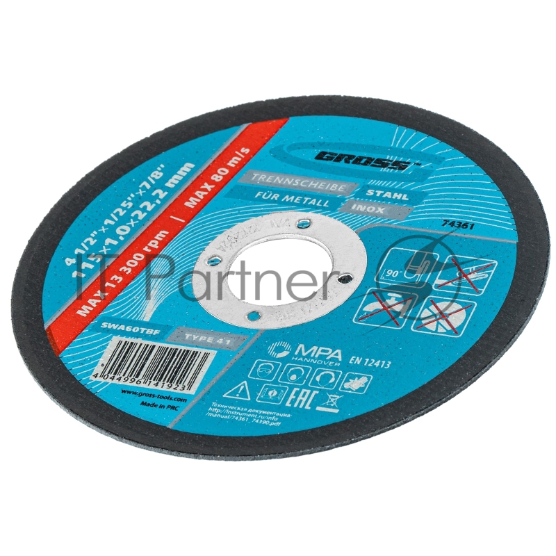 Круг отрезной по металлу, 115 х 1,0 х 22.2 мм, SWA60TBF// Gross