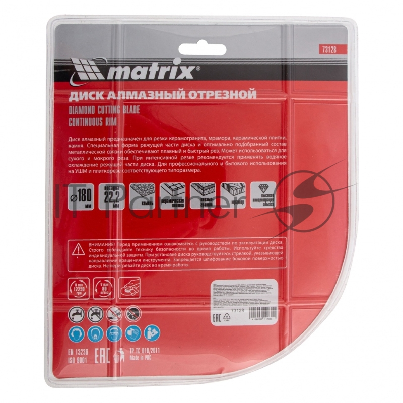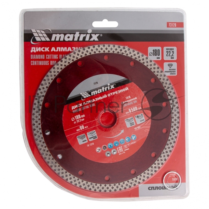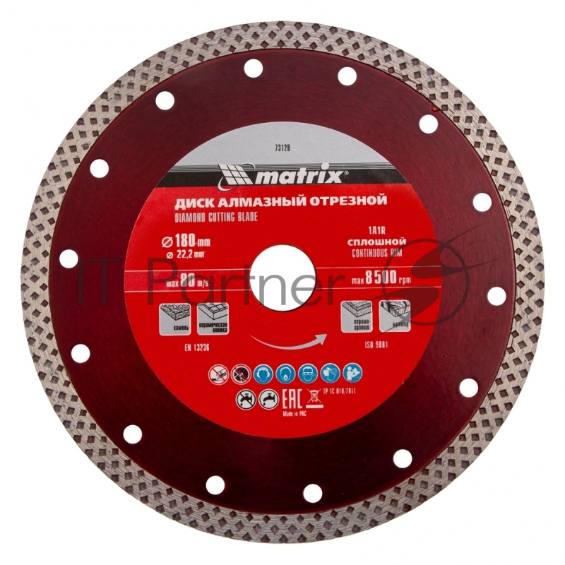 Диск алмазный отрезной сплошной, 180 х 22,2 мм, сухое/мокрое резание// Matrix