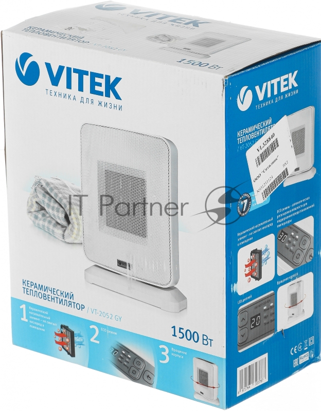 Тепловентилятор VITEK VT-2052, 1500Вт, белый [2052-vt-01]