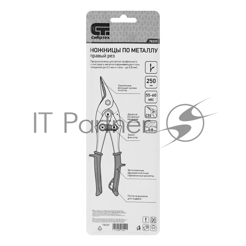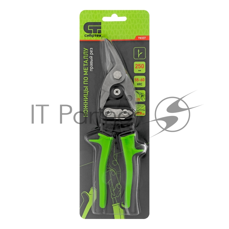 Ножницы по металлу, 250 мм, правый рез, сталь С55,двухкомпонентные рукоятки // СИБРТЕХ