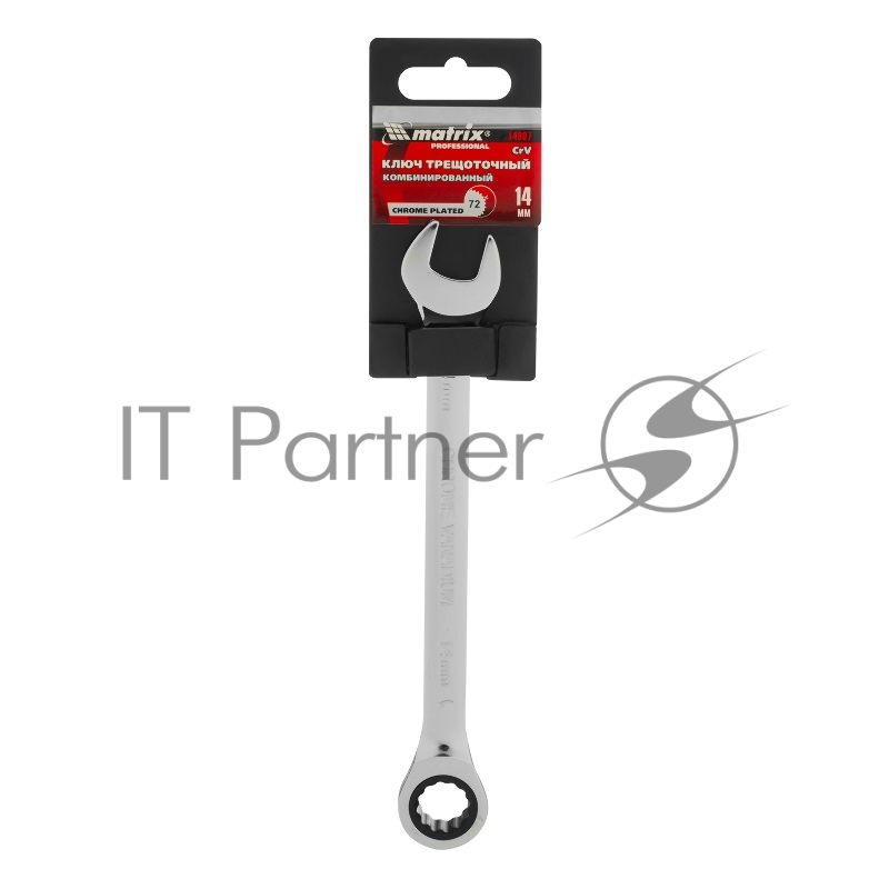 Ключ комбинированный трещоточный, 14мм, CrV, зеркальный хром// Matrix