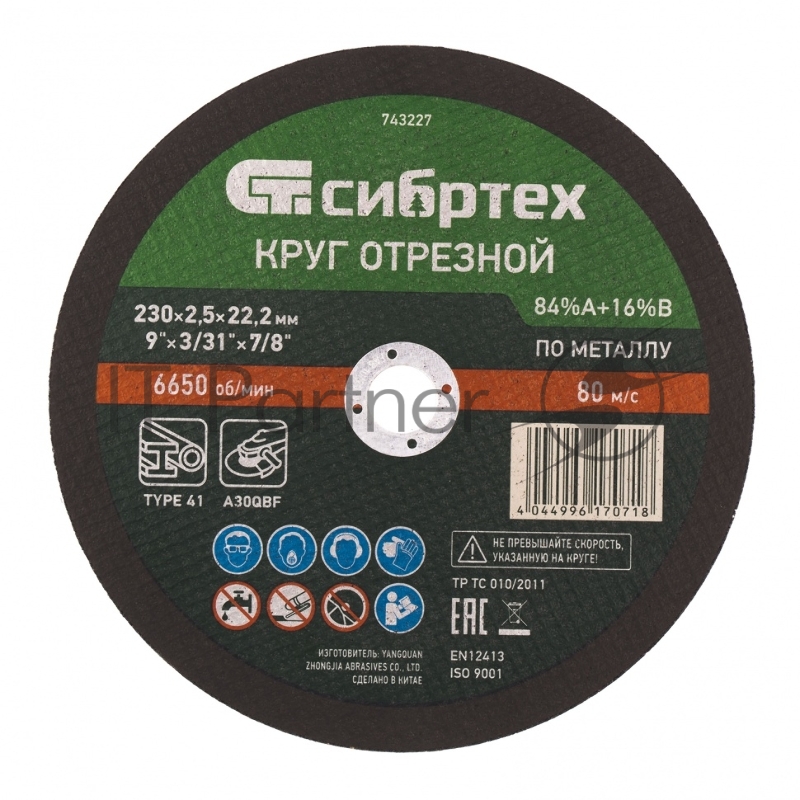 Круг отрезной по металлу, 230 х 2,5 х 22,2 мм, 84%A+16%B// Сибртех