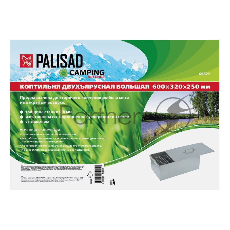 Коптильня двухъярусная большая 600х320х250 мм, 0,8 мм, с поддоном, Россия Camping// Palisad