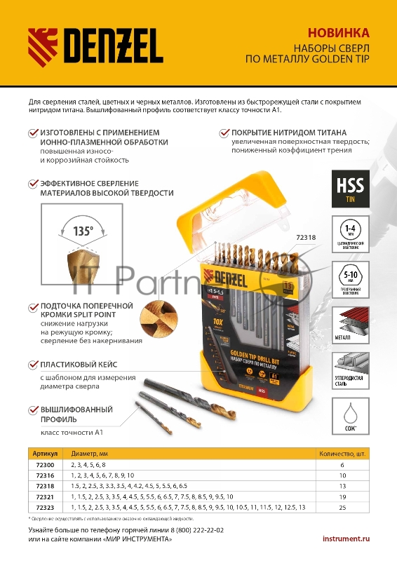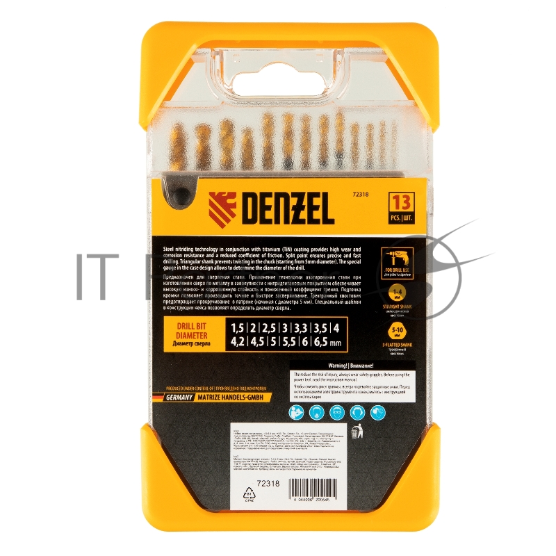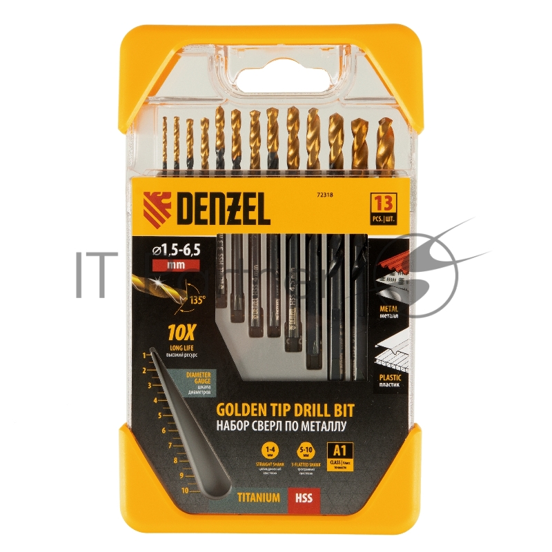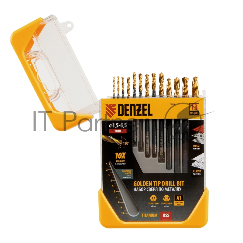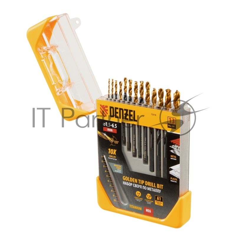 Набор сверл по металлу, 1,5-6,5 мм, HSS-Tin, Golden Tip, 13 шт// Denzel