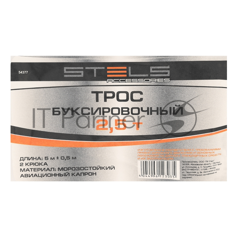 Трос буксировочный 2,5 тонны, 2 крюка, сумка на молнии, Россия // Stels