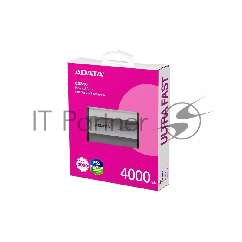 Твердотельный диск 4TB A-DATA SD810, External, USB 3.2 Type-C, [R/W -2000/2000 MB/s] серый