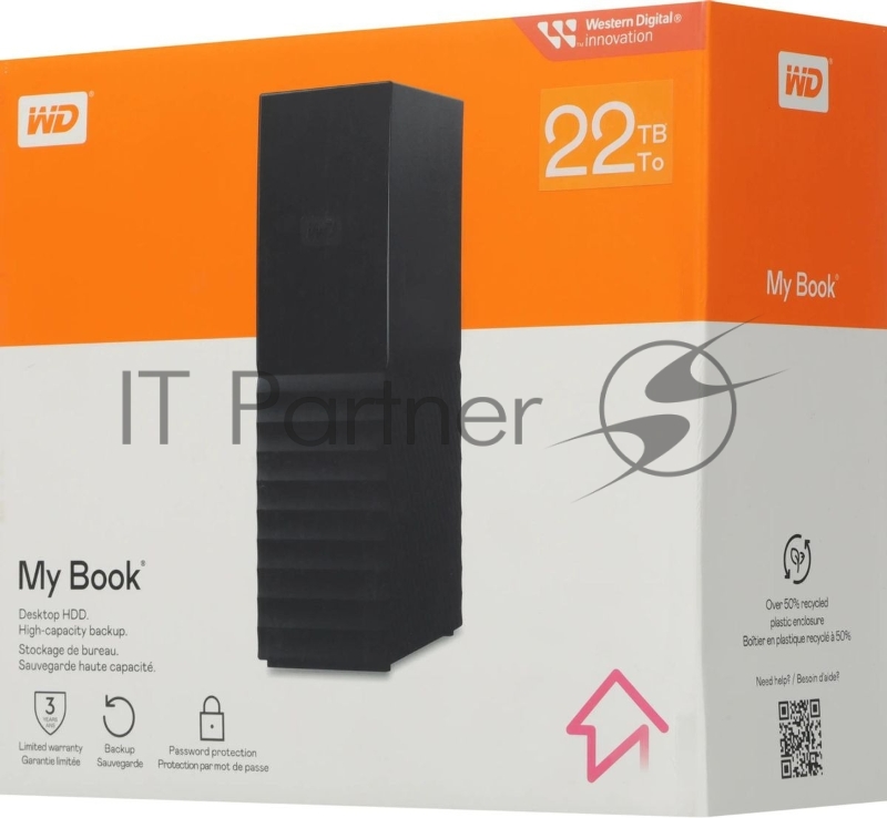 Внешний жесткий диск 22TB Western Digital WDBBGB0220HBK-EESN My Book 3.5, USB 3.2, черный