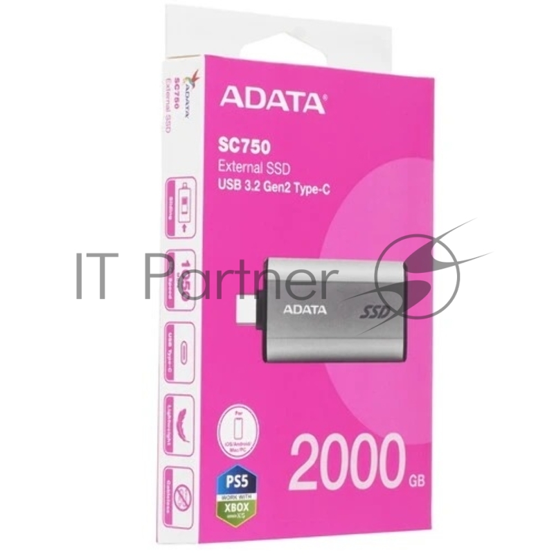 Твердотельный диск A-DATA External SC750 серый SC750-2000G-CCBK 2TB USB 3.2 Gen 2 Type-C, [R/W -1050/1000 MB/s]