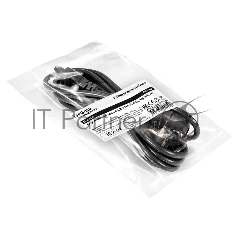 Кабель питания ноутбуков ExeGate Special PC5-3S (Евровилка Schuko->C5, 3*0.5mm2, CCA, черный, 3м)