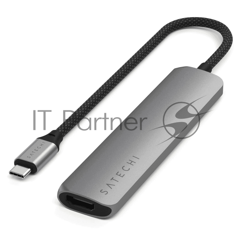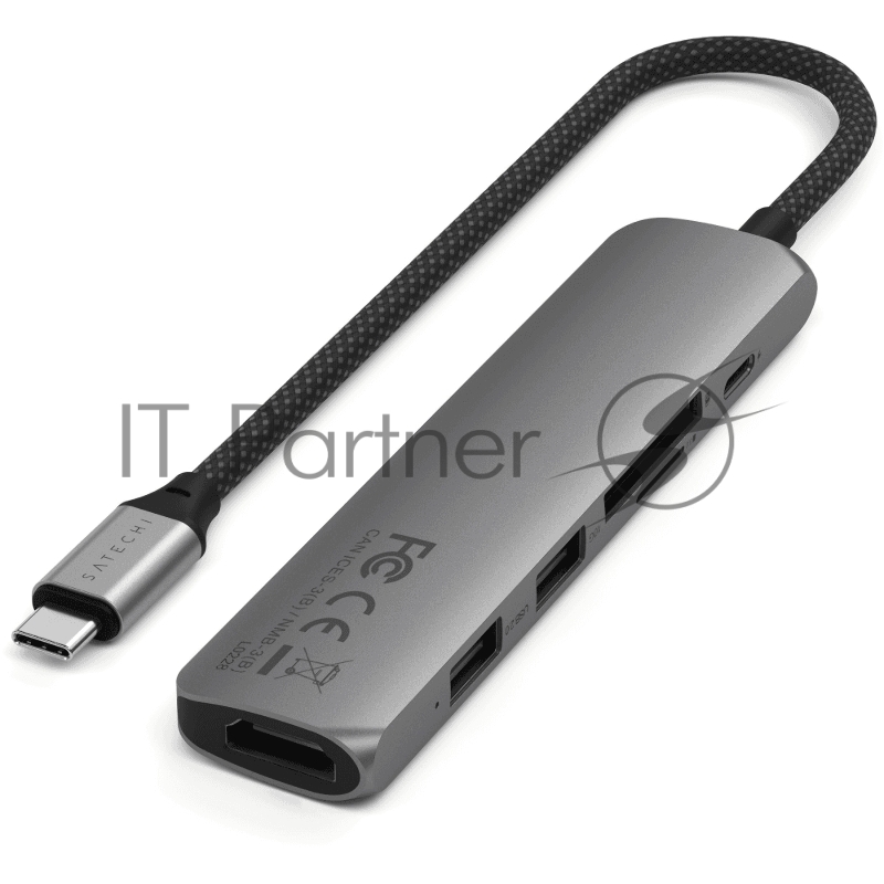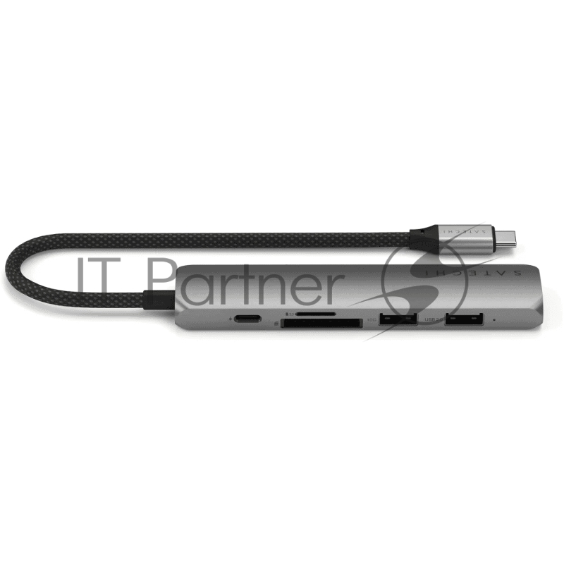 USB-хаб Satechi 6-in-1 USB-C Slim Multiport Adapter (Type-C, HDMI, 2x Type-A, SD, microSD), до 75 Вт, Серый Док-станция ST-P6SM