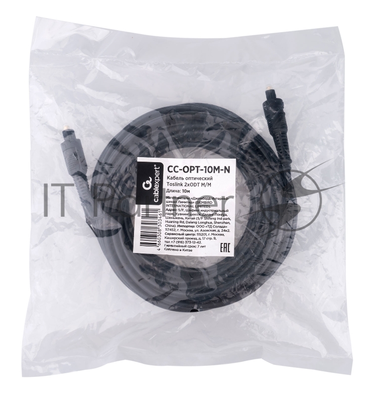 Кабель оптический Cablexpert CC-OPT-10M-N, Toslink 2xODT M/M, 10м, черный, пакет