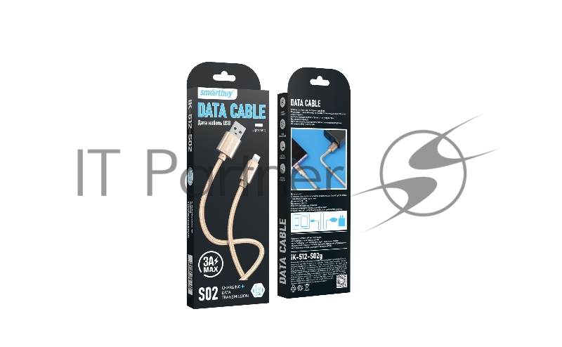 Кабель Smartbuy (iK-512-S02g) S02 Lightning золотистый, 3 А, 1 м,