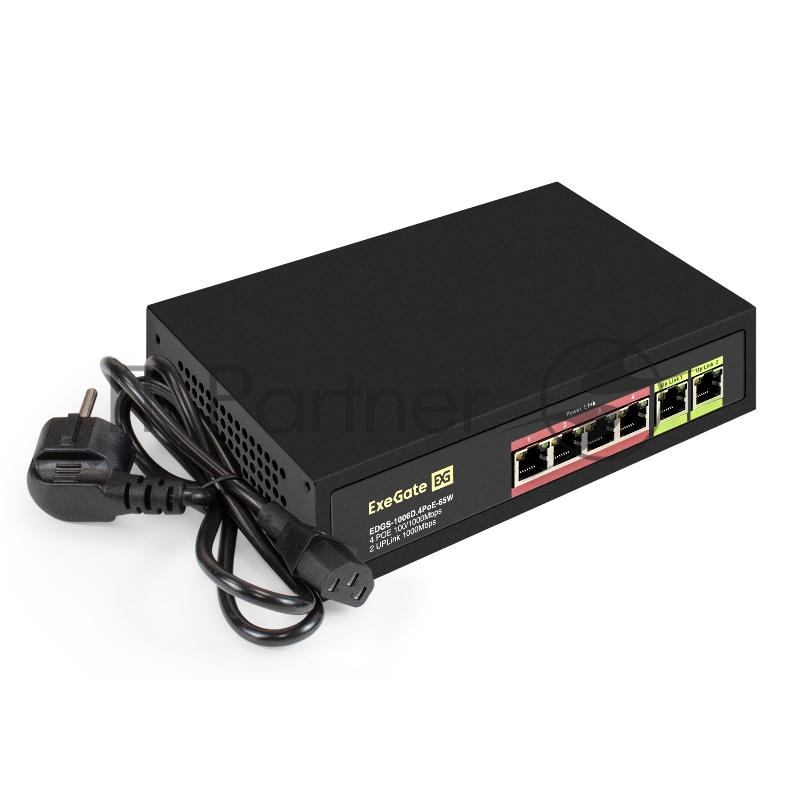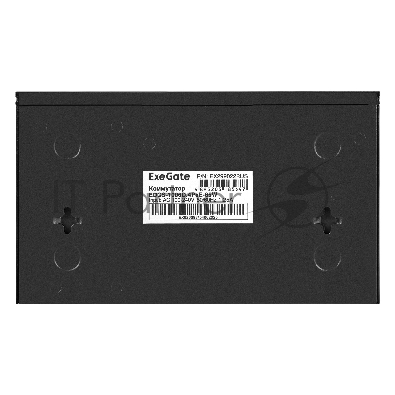 Коммутатор неуправляемый ExeGate EDGS-1006D.4PoE-65W (6-портовый гигабитный UTP 10/100/1000 Base-T: 4 порта IEEE 802.3af (PoE), мощность PoE: 15,4W, суммарно 65W, 2 порта RJ45 uplink, настенный/настольный, металлический корпус)