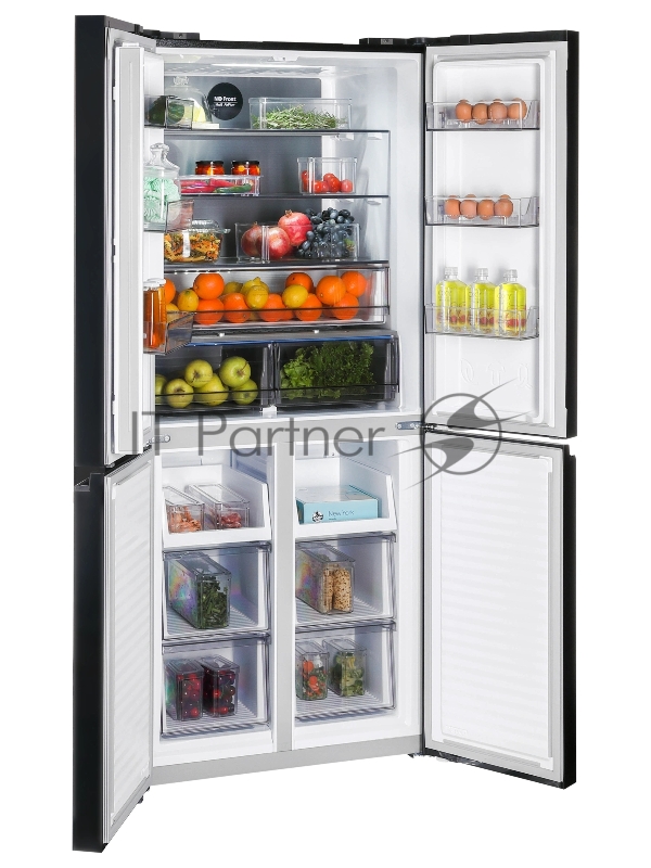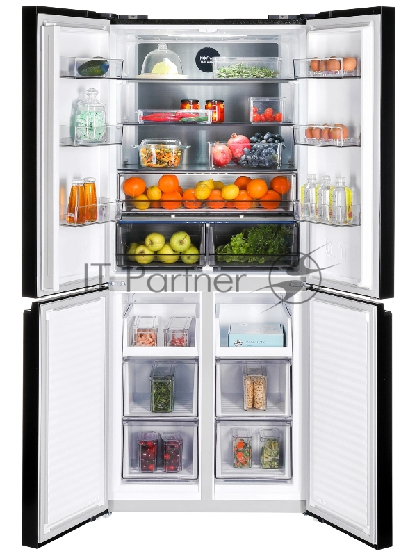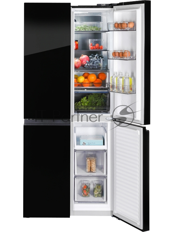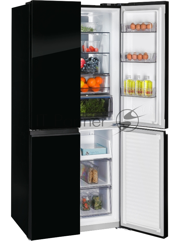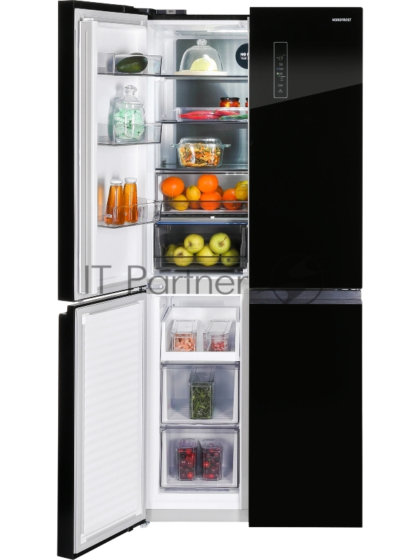 Холодильник Nordfrost RFQ 450 NFGB 3-хкамерн. черный глянц. инвертер