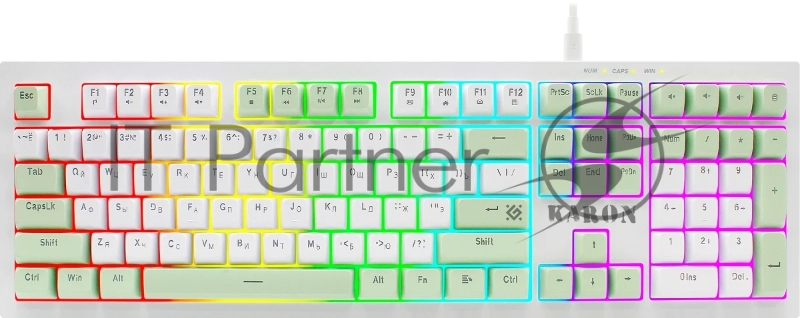 Клавиатура DEFENDER (45129) Karon GK-129 RU,белый/зеленый