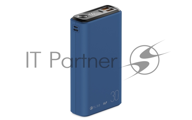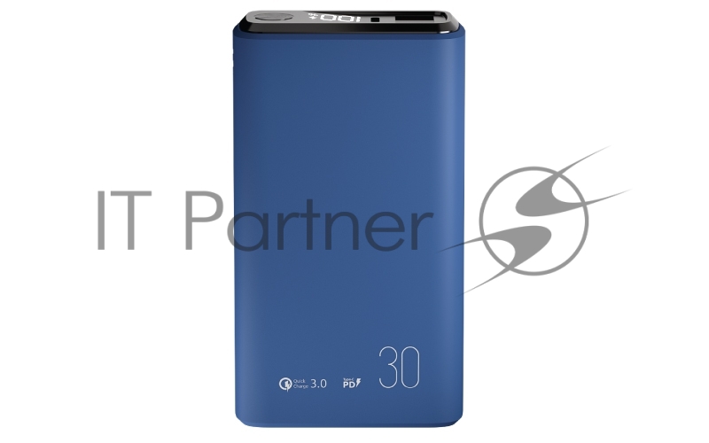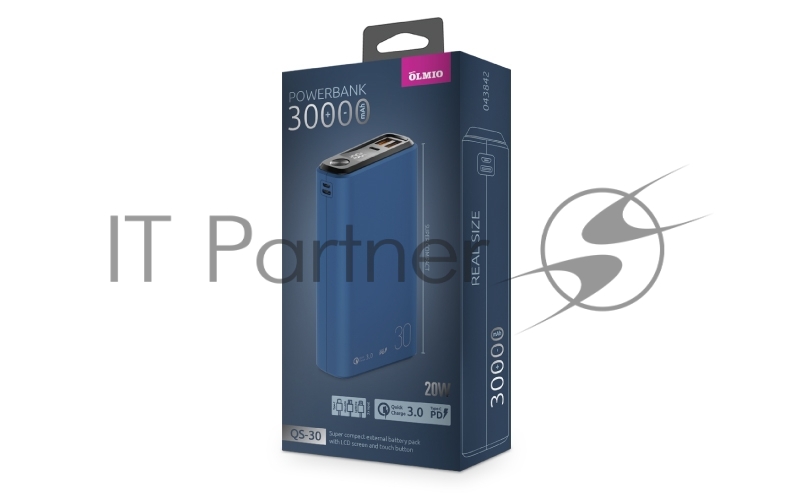 Внешний аккумулятор OLMIO QS-30, 30000mAh, 22.5W, QuickCharge3.0/PowerDelivery, LCD, темно-синий.