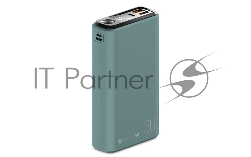Внешний аккумулятор OLMIO QS-30, 30000mAh, 22.5W, QuickCharge3.0/PowerDelivery, LCD, темно-зеленый.
