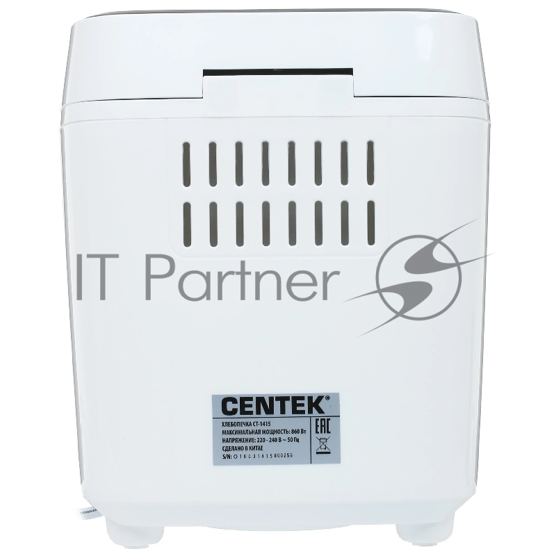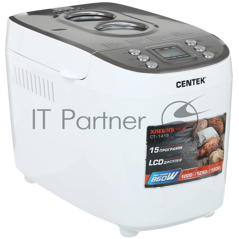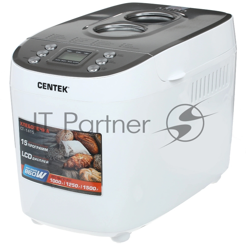 Хлебопечка Centek CT-1415 (бел/сталь) 1500 г БОЛЬШОЙ ОБЪЕМ, 860Вт, 15 программ, таймер, LCD, окошко