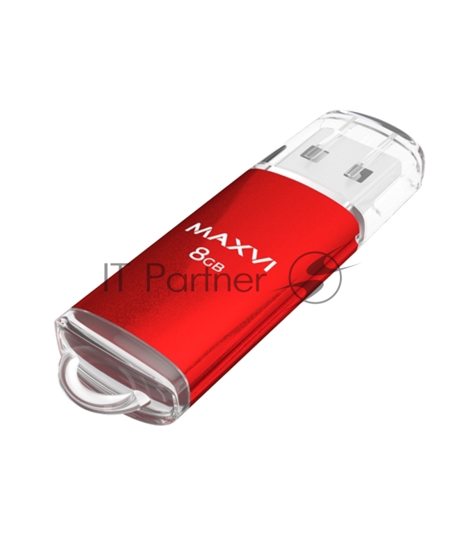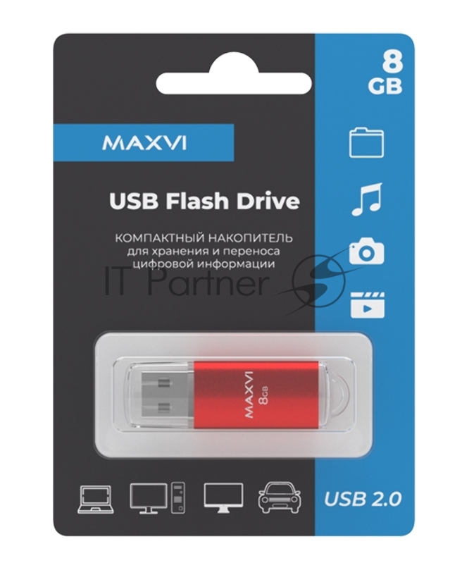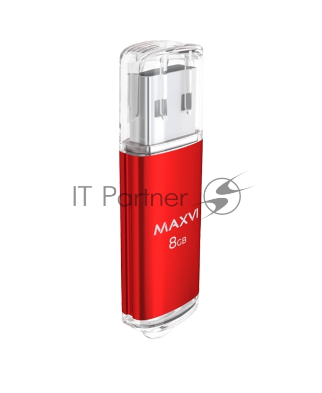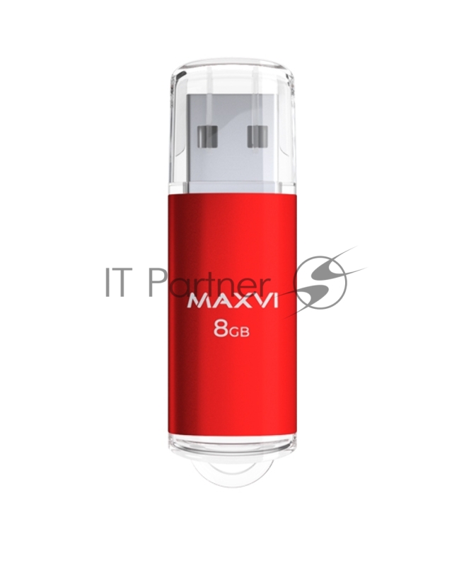 USB флеш-накопитель Maxvi MP 8GB red, монолит с колпачком, металл + ABS пластик, USB 2.0.