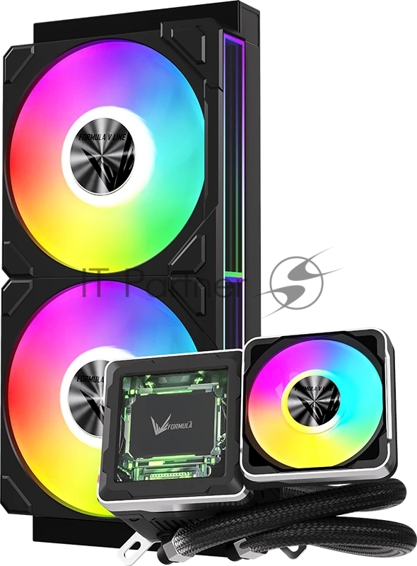Система жидкостного охлаждения Formula V Line Cryo Wing Digi 240 BK, 240mm, LCD 2.73, 2x120mm, ARGB fans, LGA115X/1200/1700/1851/1366/20 AM3/AM4/AM5/Ryzen3/Ryzen5/Ryze