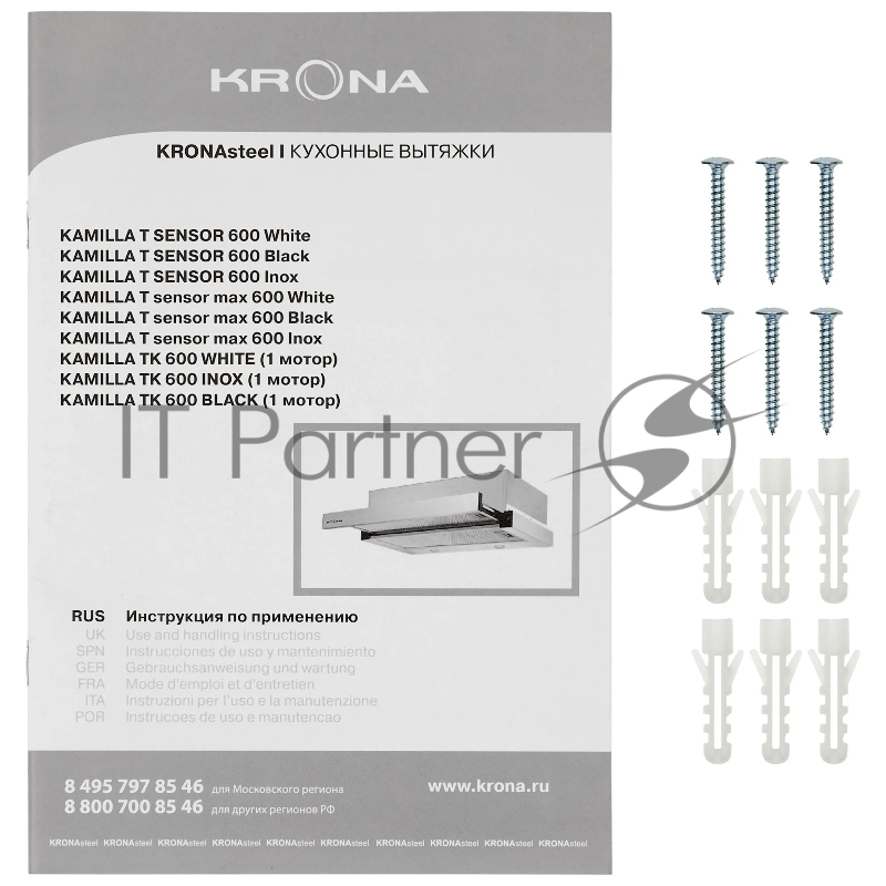 Купить вытяжку для кухни KRONA KAMILLA T SENSOR 600 White в Коврове. Заказать на сайте. Получить в "Ваш Компьютер" г.Ковров пр-т Ленина 20