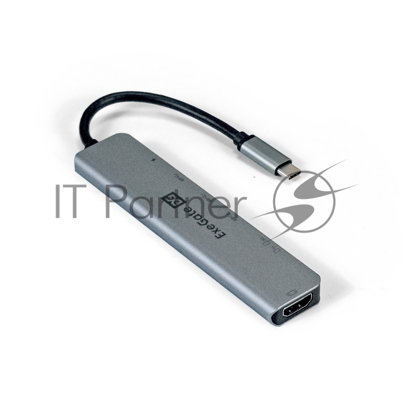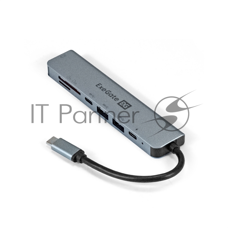 USB-концентратор ExeGate EX293983RUS DUB-21C/PD/CR/H (кабель-адаптер USB Type-C --> 2xUSB3.0 + Card Reader + PD 100W + HDMI 4K@60Hz, Plug&Play, серый)