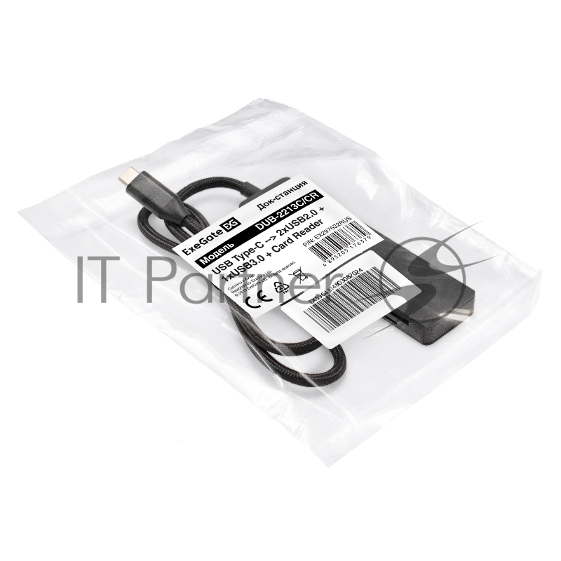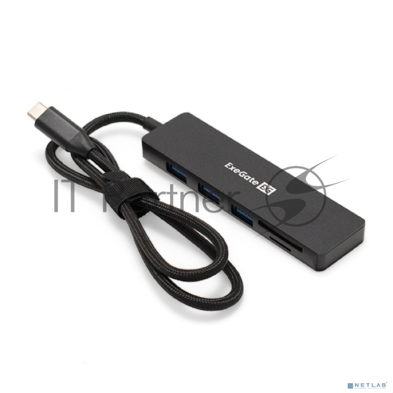 USB-концентратор 4-в-1 ExeGate DUB-2213C/CR (кабель-адаптер USB Type-C --> 2xUSB2.0+ 1xUSB3.0+Card Reader, Plug&Play, черный)