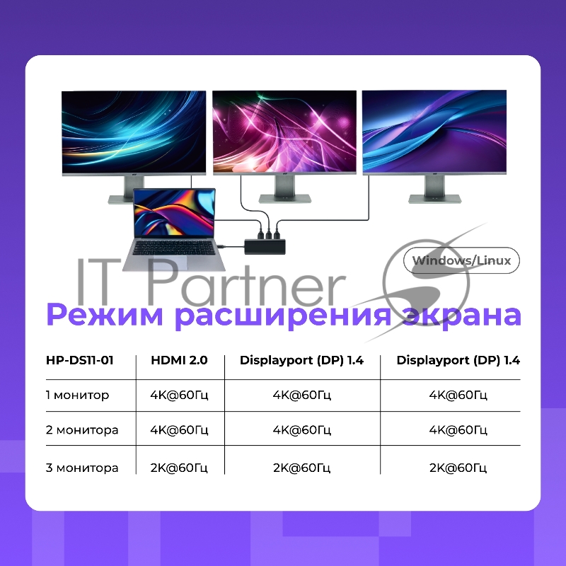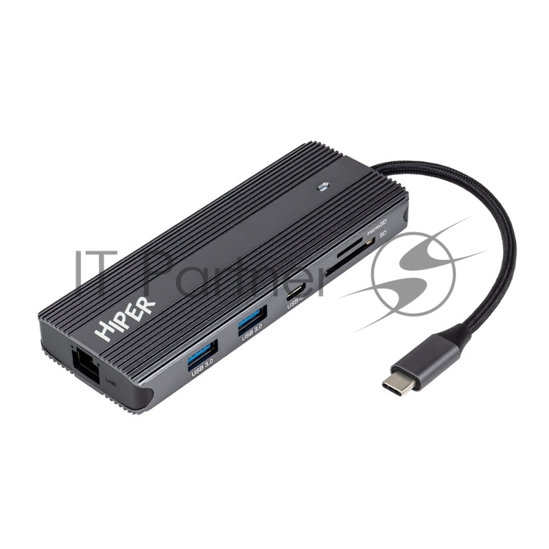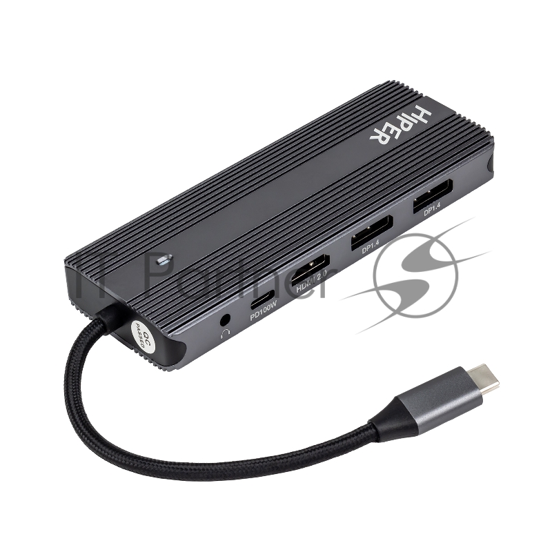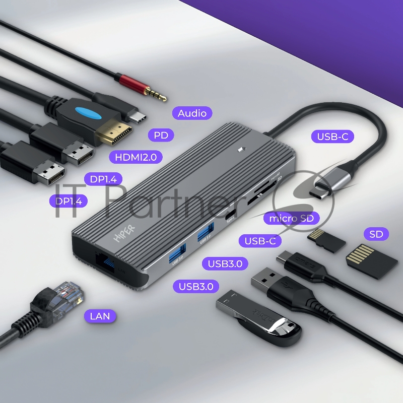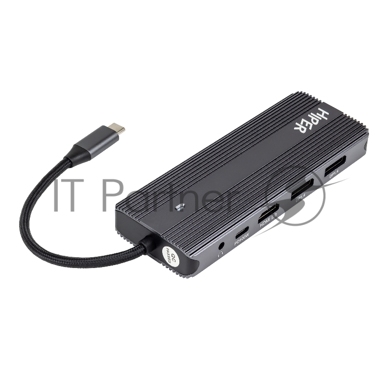 USB-концентратор HIPER Docking station USB-C HUB 11in1 (1*USB-C 100W PD, 1*HDMI 4K@60Hz, 2*DP 4K@60Hz, 2*USB-A 3.0 (5Gbps data), 1*USB-C 3.0 (5Gbps data), 1*microSD, 1*SD, 1*3.5мм audio, 1*RJ45 GB)
