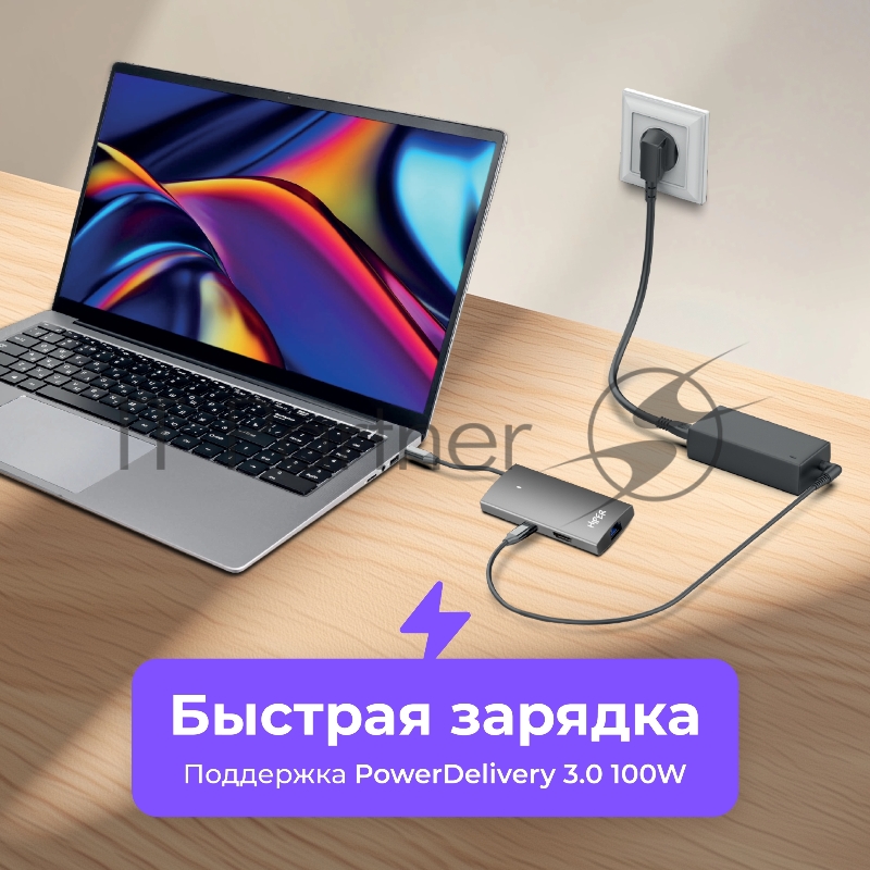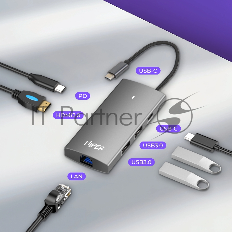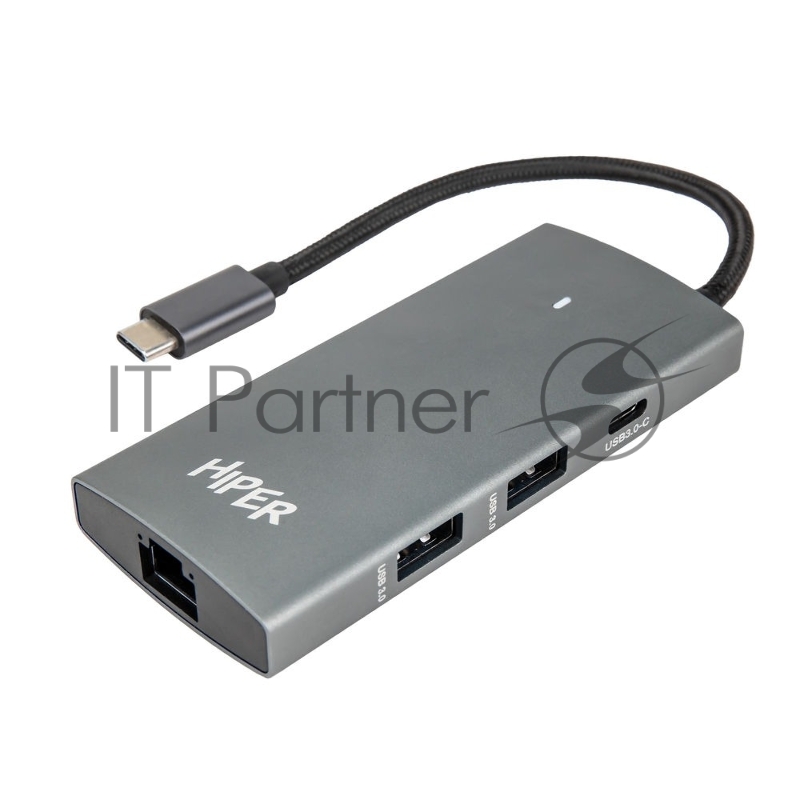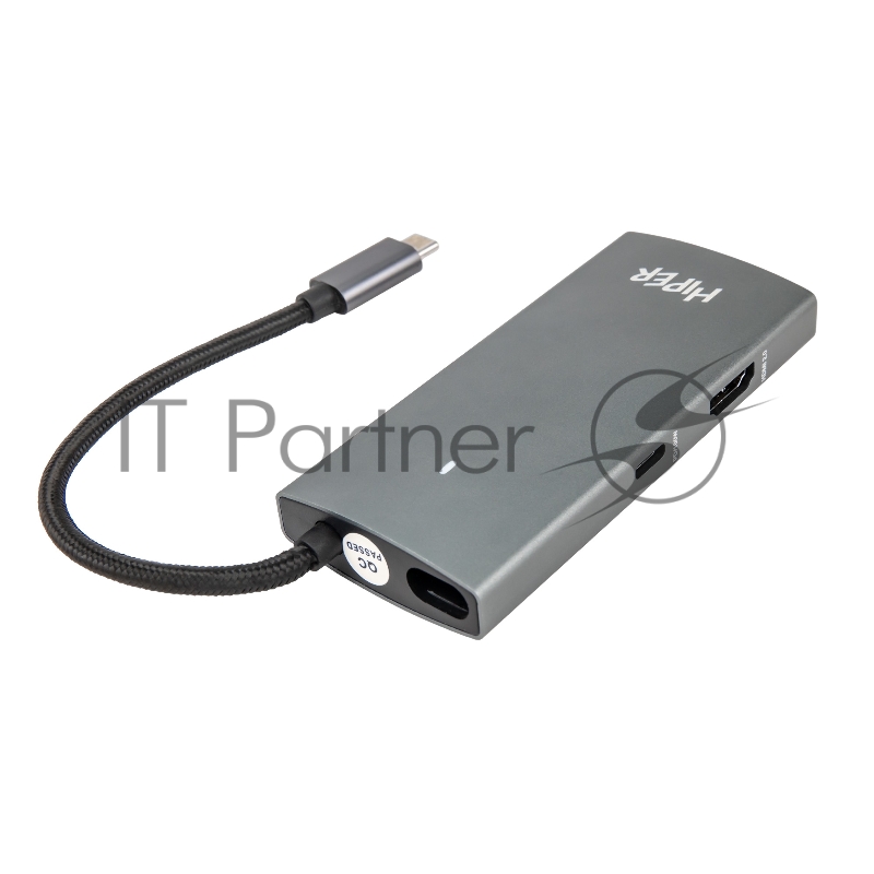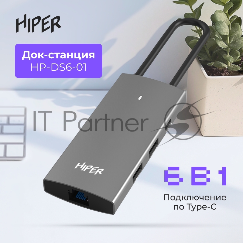 USB-концентратор HIPER Docking station USB-C HUB 6in1 (1*USB-C 100W PD, 1*HDMI 4K@60Hz, 2*USB-A 3.0 (5Gbps data), 1*USB-C 3.0 (5Gbps data), 1*RJ45 Gb)