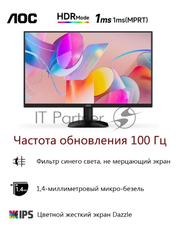 МОНИТОР 23.8 AOC 24B31H Black (IPS, 1920x1080, 120Hz, 1 ms, 178°/178°, 250 cd/m, 1500:1, +HDMI 1.4 (AC ext))