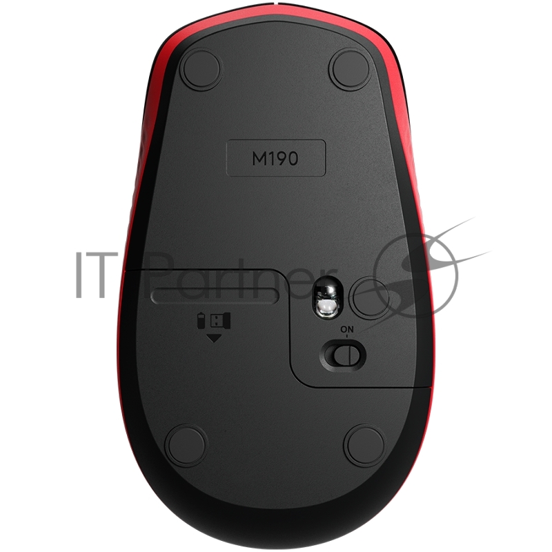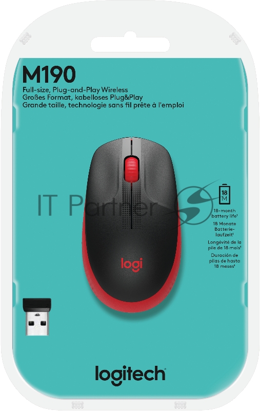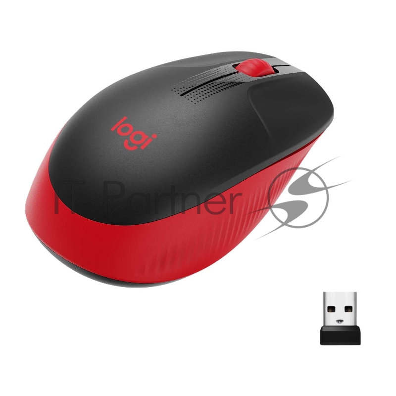Мышь беспроводная Logitech M190 черный/красный, 1000 dpi, радиоканал, USB, кнопки - 3