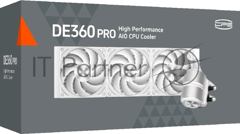 Система охлаждения/ Water Cooling System PCCooler DE360 Pro WH (300W, 360mm, White, ARGB Pump, Fans: 3x120mm, 86.73CFM, 32dBA, 2200RPM/ Pump height 57mm, 28dBA, 3200RPM, Rad thickness 27mm/ S: 1851, 1700, 1200, 115X, AM5, AM4, AM3)