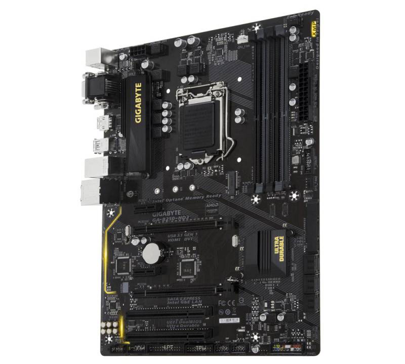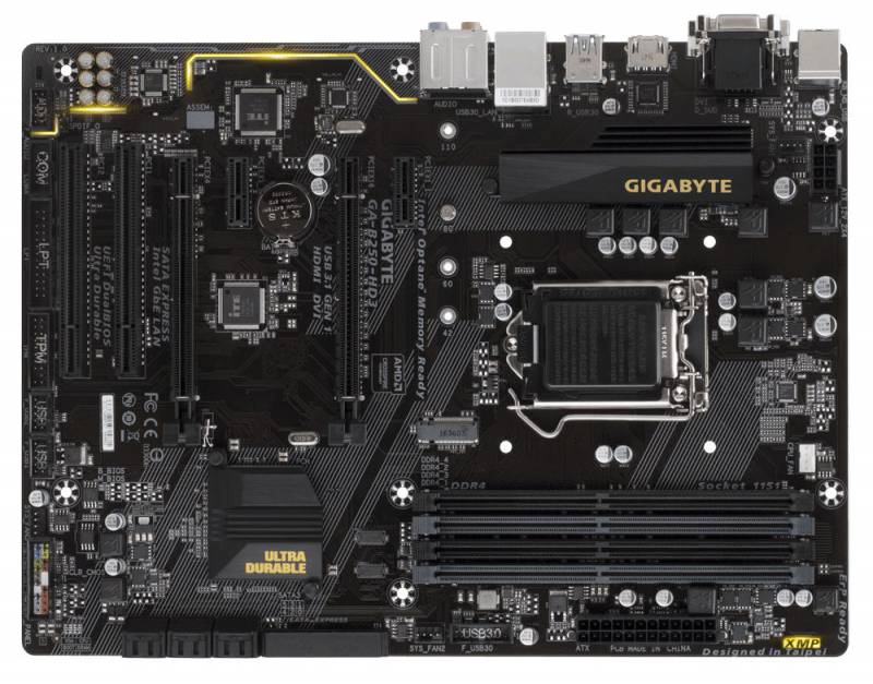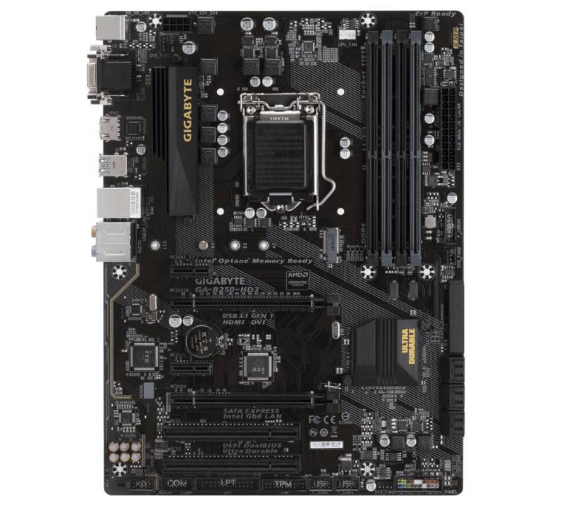 Мат. плата Socket1151 GIGABYTE GA-B250-HD3 (iB250, 4xDDR4, M.2, SATA III, 2xPCI-E, D-Sub, DVI, HDMI, 1Гбит LAN, USB3.1, ATX)