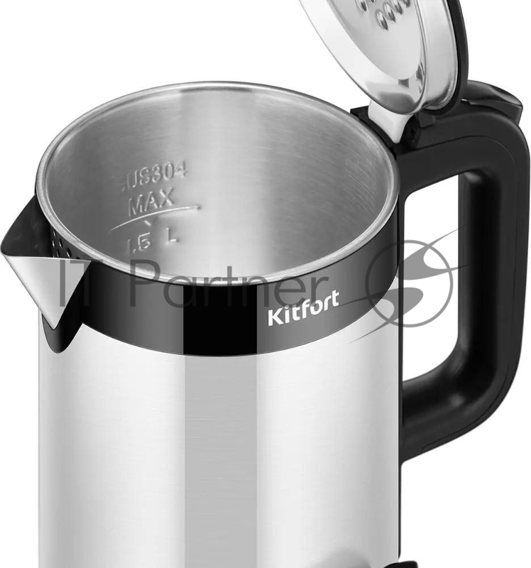 Чайник электрический Kitfort КТ-6691 1.5л. 1500Вт черный/нержавеющая сталь корпус: нерж.сталь/пластик