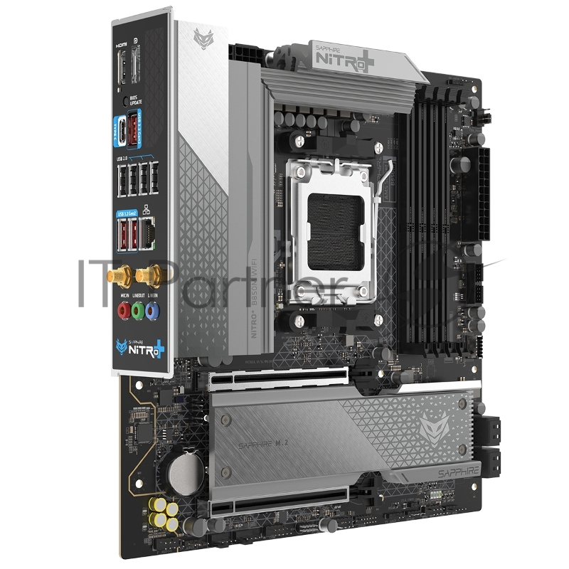 Материнская плата Sapphire B850M NITRO+ WIFI B850, AM5, 4*DDR5, 2*PCIEx16, 2*M.2, 2*TypeC, 3*USB3.2Gen2, 2*USB3.2Gen1, 6*USB2.0, 4*SATA3.0, 2.5G, DP, HDMI, M-ATX, RTL